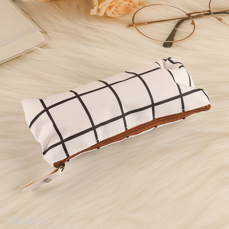 Factory Supply Portable Plaid Canvas Pen Bag Zippered Pencil Bag