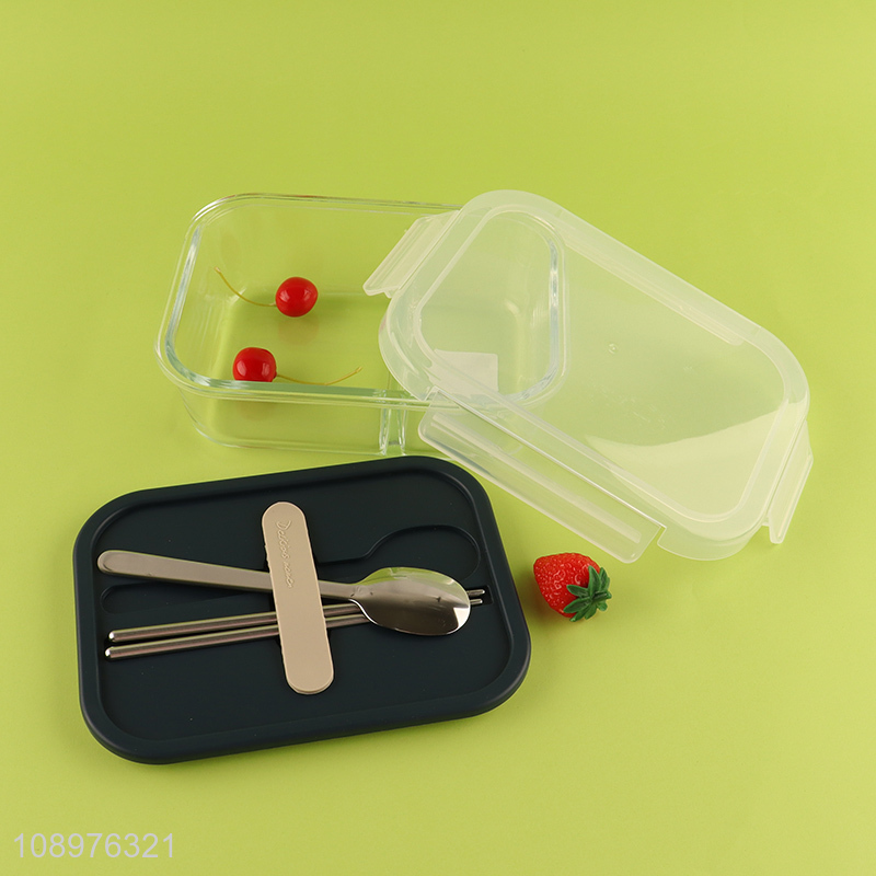 Good selling portable glass lunch box with tableware set