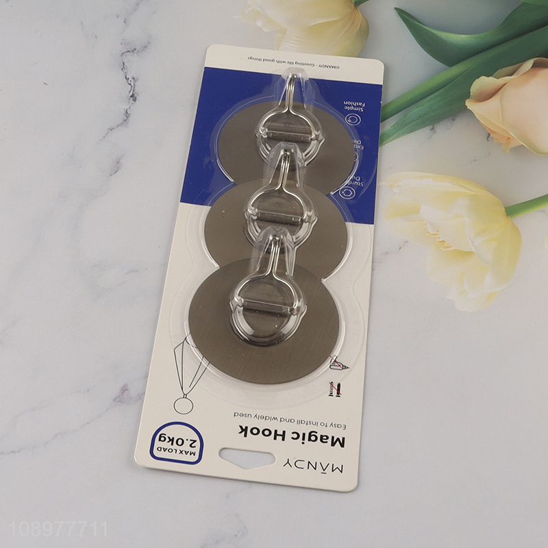 Yiwu market 3pcs round self adhesive hook sticky adhesive hook