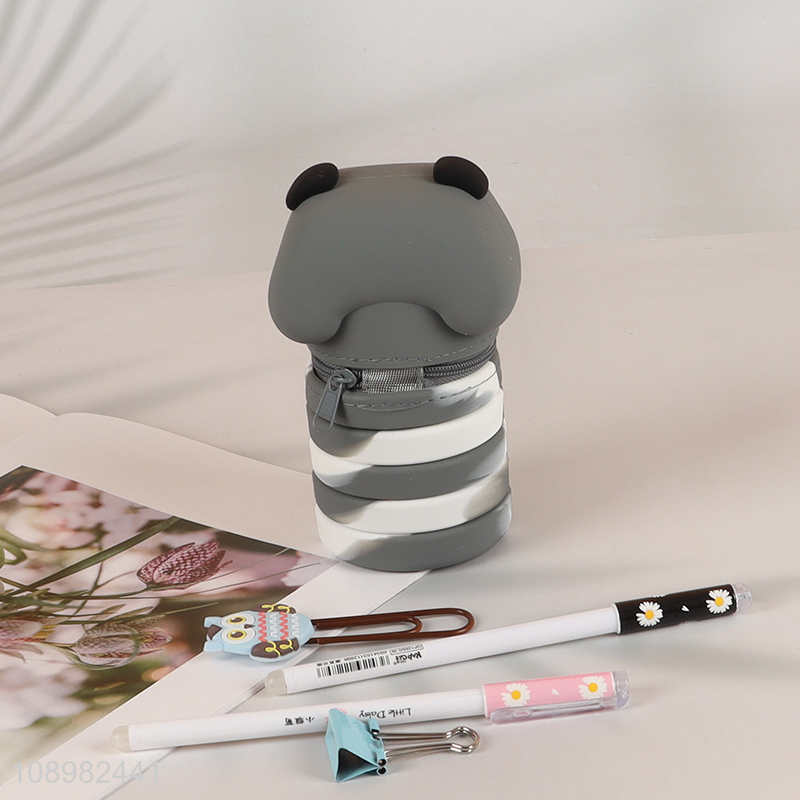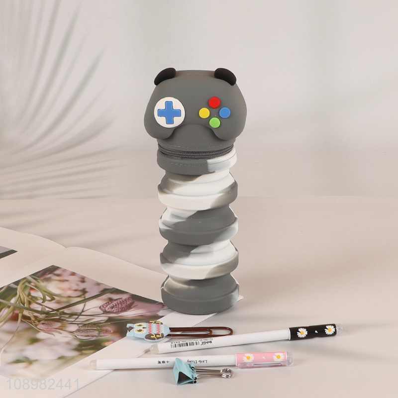 Good Quality Silicone Zipper Pencil Bag Big Capacity Retractable Pencil Pouch