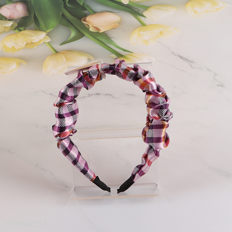China Imports Checked Hair Hoop Non-Slip Headband Wide Hairband