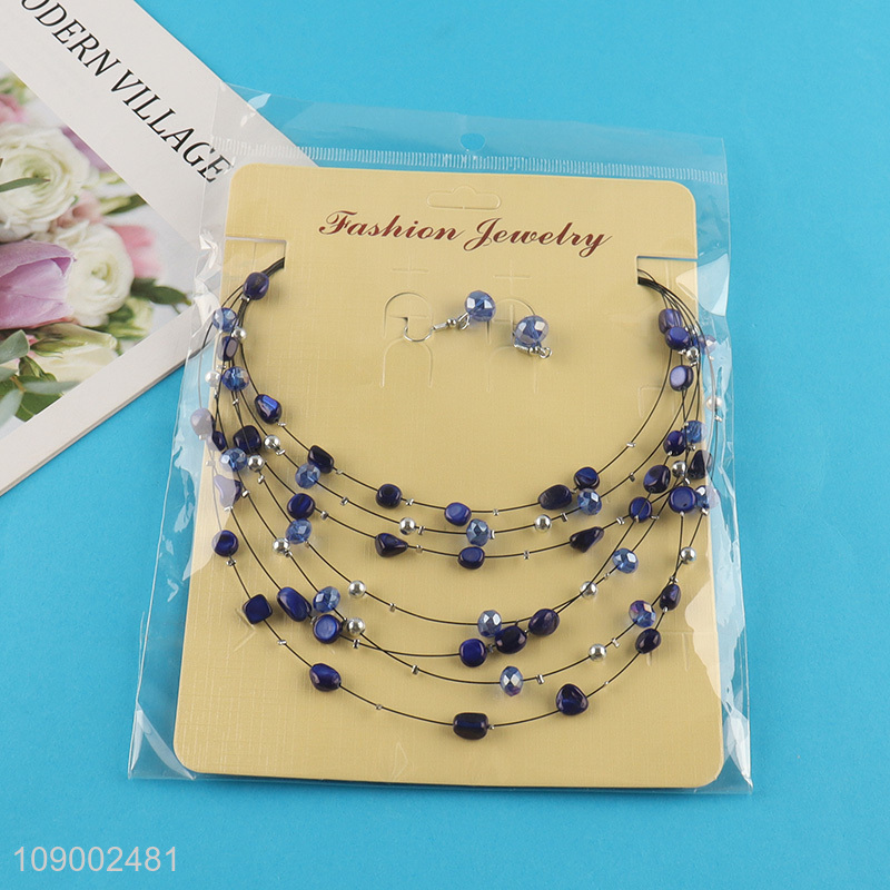 Wholesale Multi-Layered Beaded Necklace and Earring Set for Women and Girls