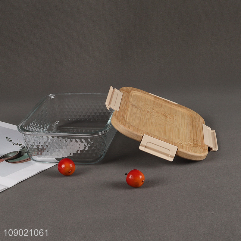 Hot selling rectangle bamboo lid glass food container preservation box