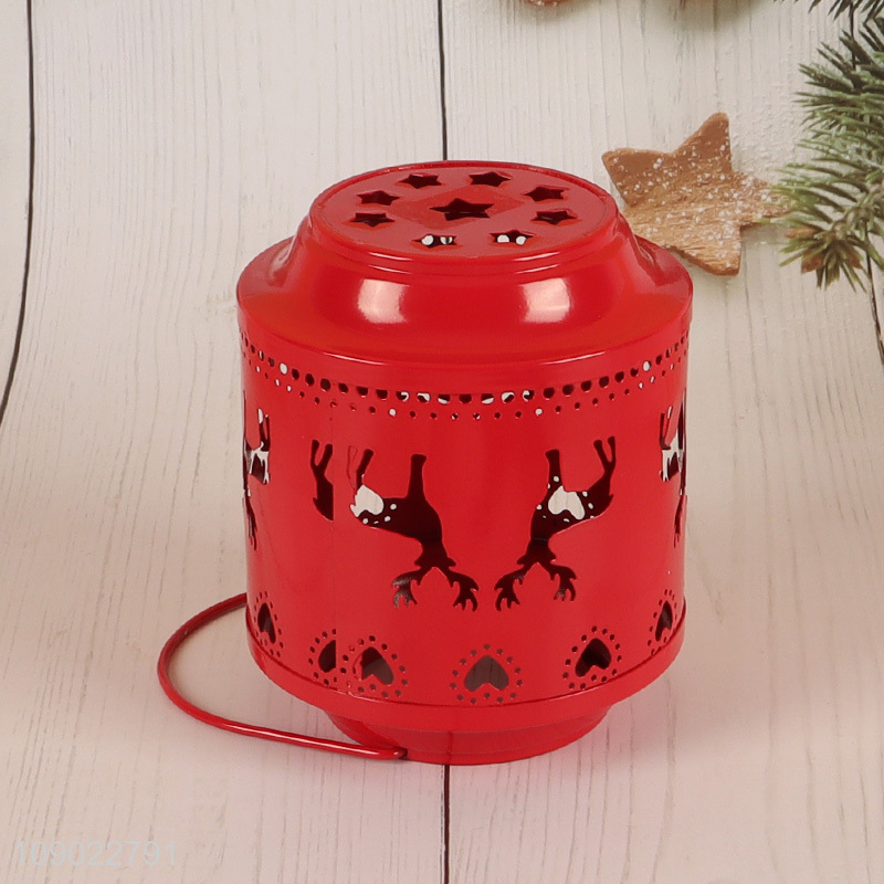 Popular products red Christmas decoration metal candle holder with handle