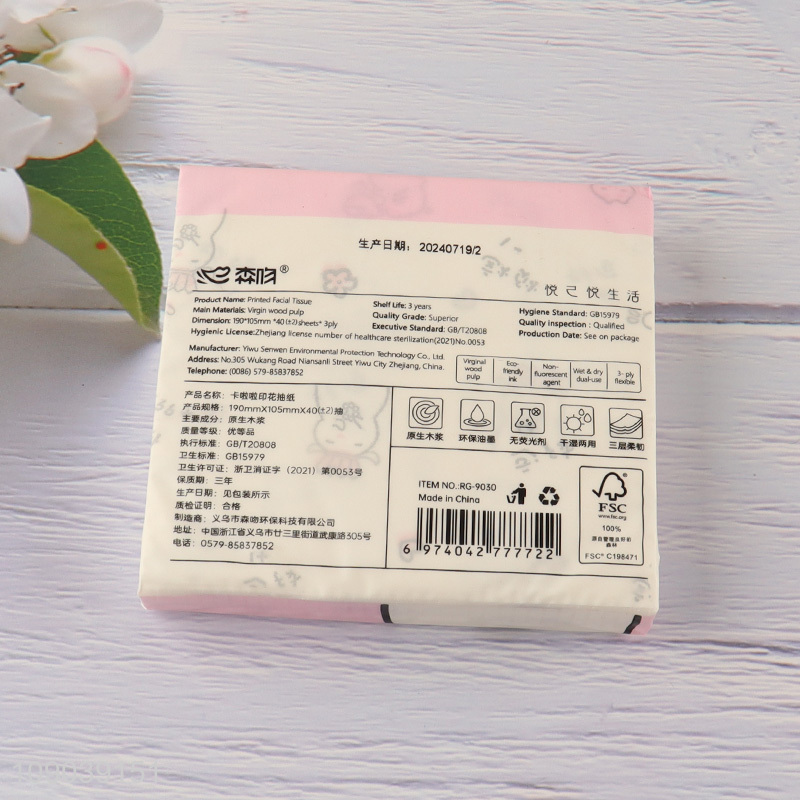 Hot selling cartoon printed wood pulp tissue facial tissue napkin wholesale