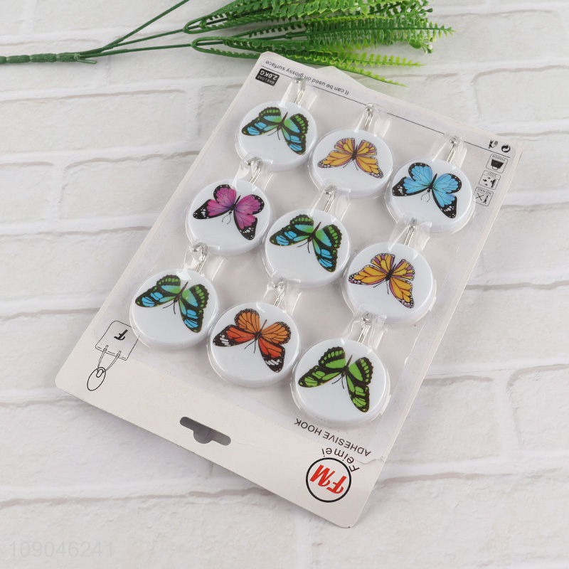 Top products 9pcs butterfly pattern round household sticky hook wall hook set