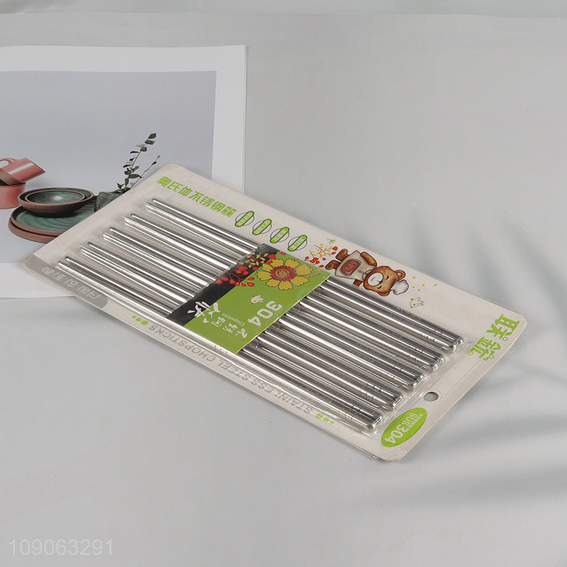 Factory Price 5 Pairs Reusable Food Grade 304 Stainless Steel Chopsticks Set