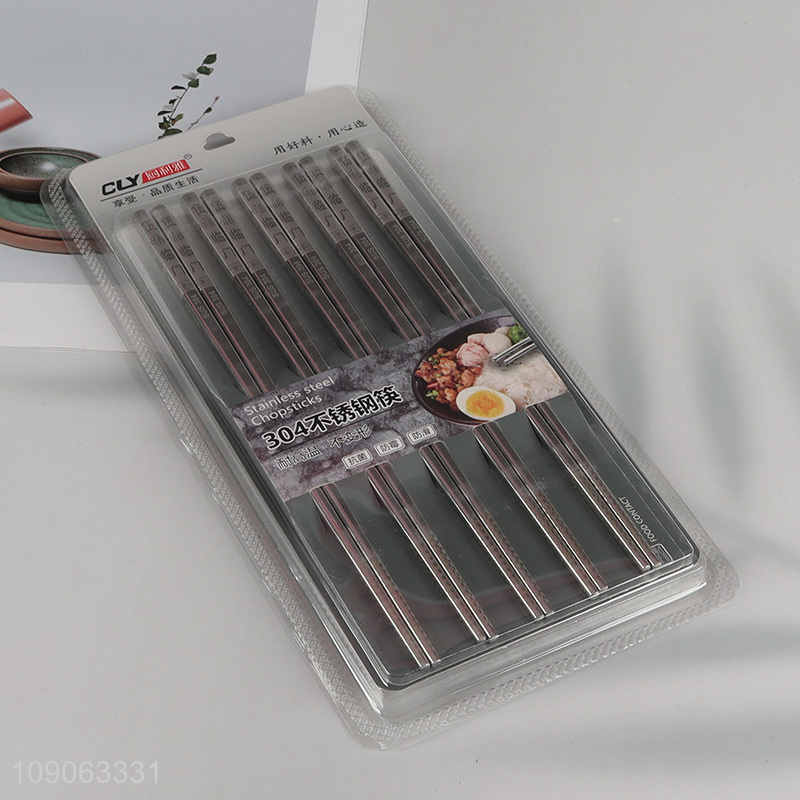 Good Quality 5 Pairs 304 Stainless Steel Chopsticks Metal Chinese Chopsticks