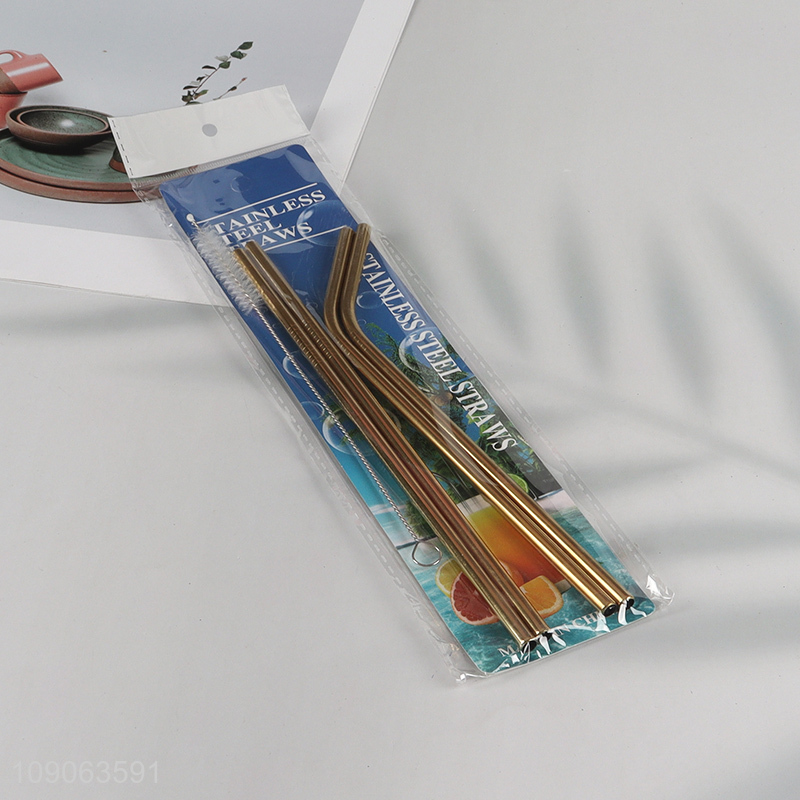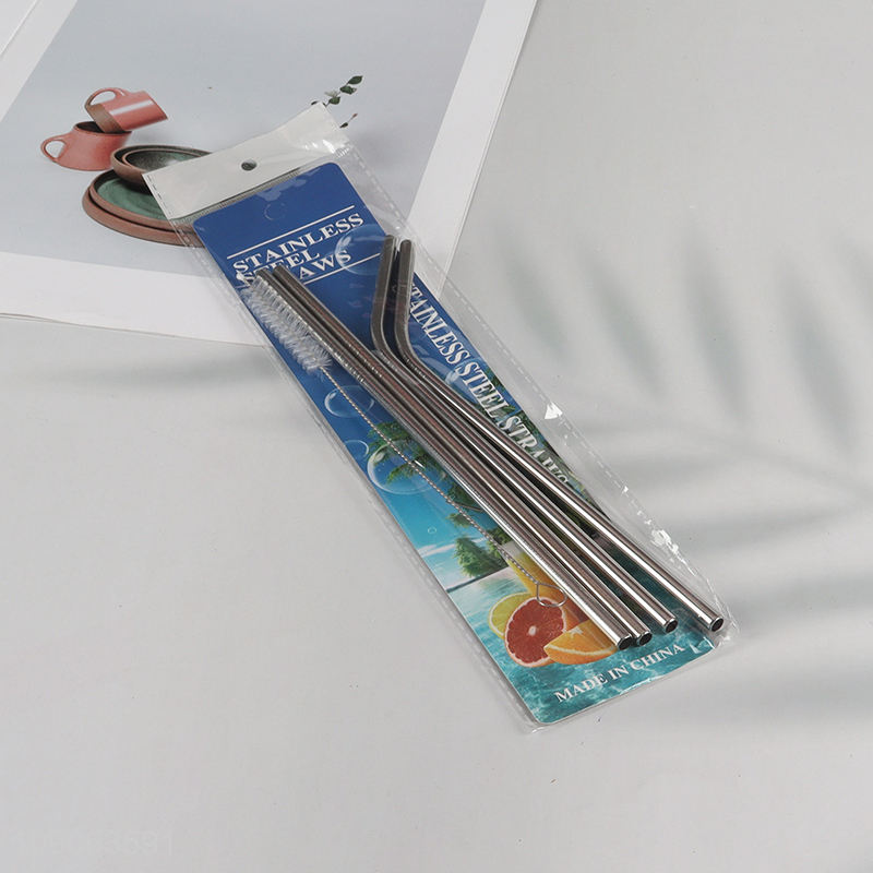 Hot Sale 4 Pack Stainless Steel Straws 2 Straight + 2 Bent with 1 Straw Brush