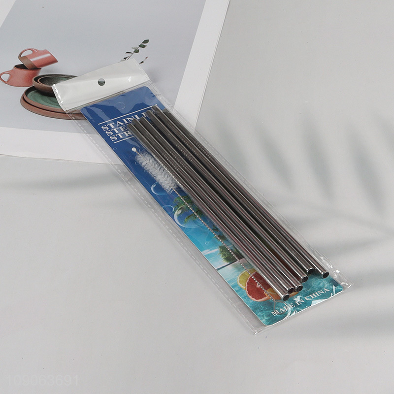 Hot Sale 6 Pack Stainless Steel Straws Straight Straws with 1 Straw Brush