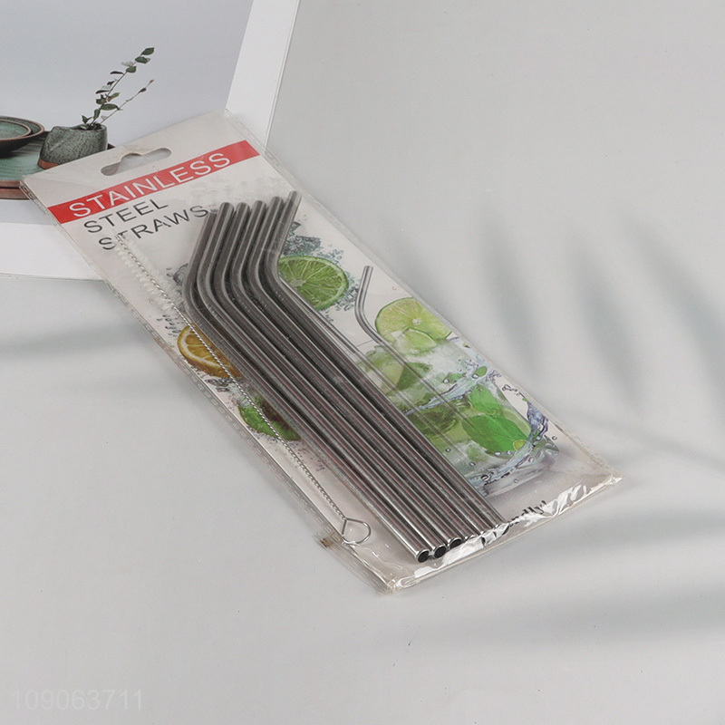 New Arrival 6 Pack Stainless Steel Straws Bent Straws with 1 Straw Brush