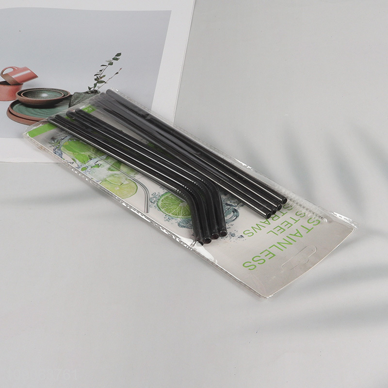 Factory Price 8 Pack Stainless Steel Straws 4 Straight + 4 Bent with 1 Straw Brush
