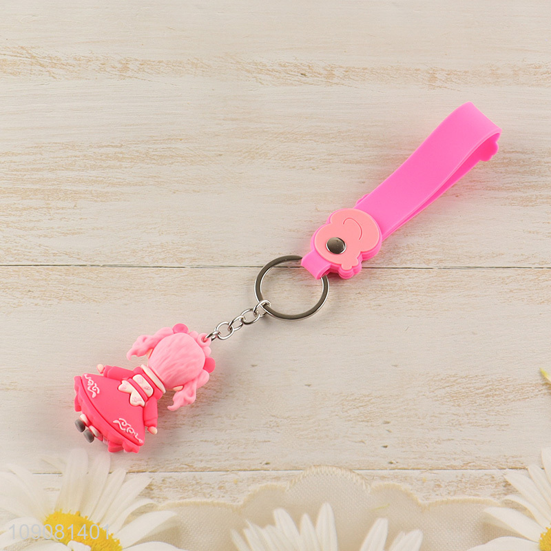 Yiwu market pink princess silicone pendant cartoon keychain for girls