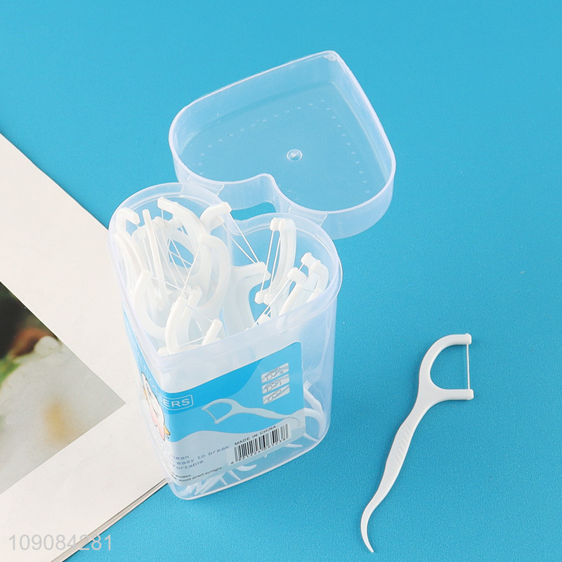 Low price heart shape plastic box dental flosser for teeth cleaning
