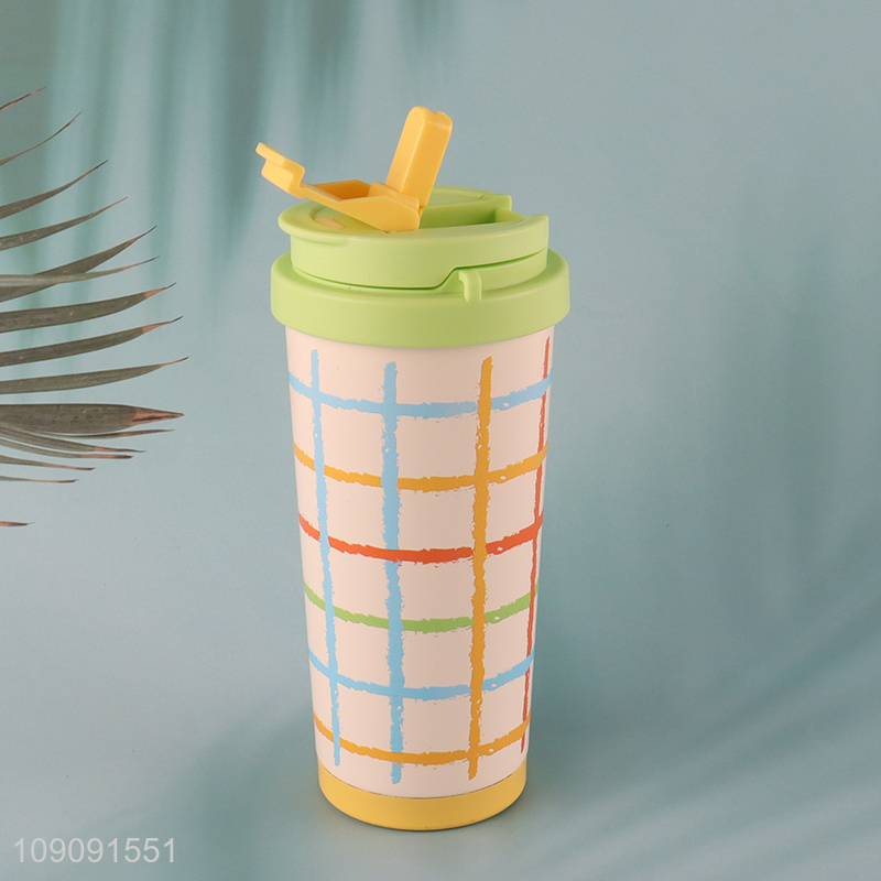 Wholesale Colorful Plaid Stainless Steel Insulated Coffee Cup with Straw & Tea Infuser