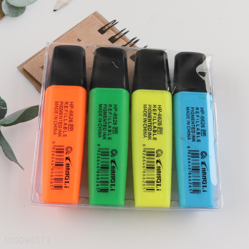 Good Quality 4 Colors Chisel Tip Fluorescent Pens Highlighter Markers