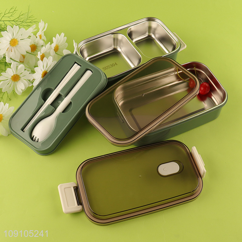 New Product 2-Layer Leakproof Stainless Steel Bento Lunch Box with Spoon & Fork