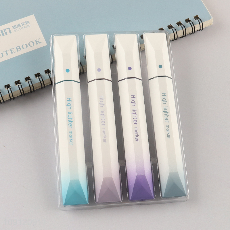 New product 4pcs school office stationery soft head highlighter pen set