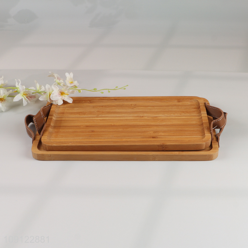 Hot Selling Bamboo Serving Tray Bamboo Serving Platter with PU Leather Handles