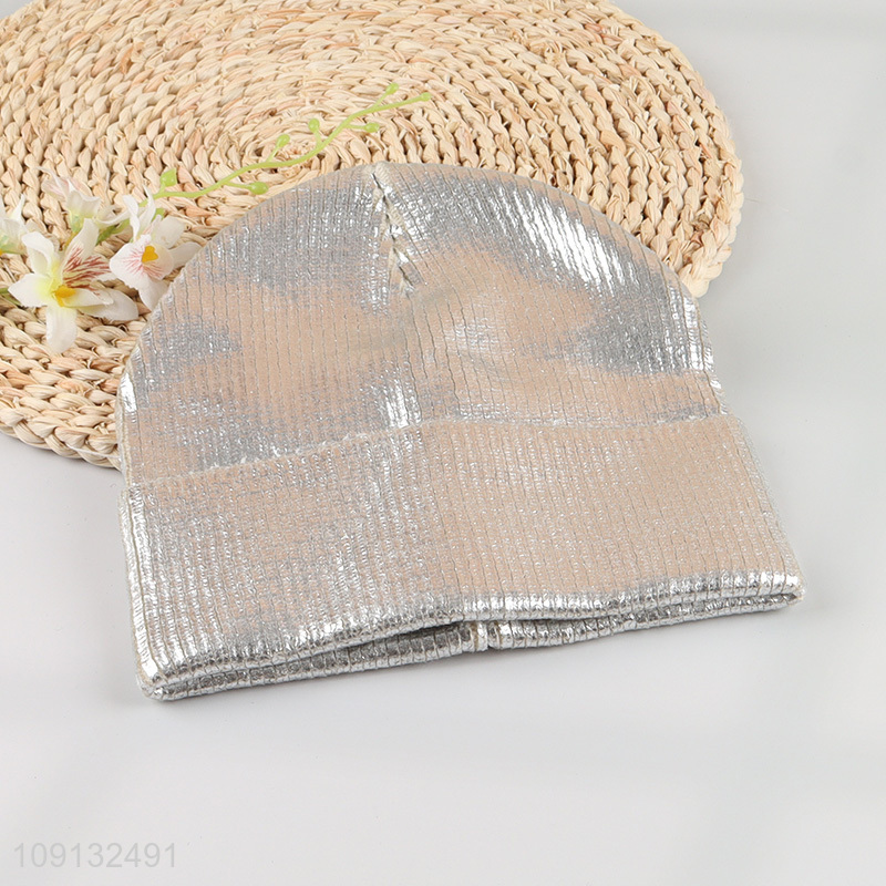 Hot Selling Winter Beanie Hat Silver Knitted Beanie for Men Women