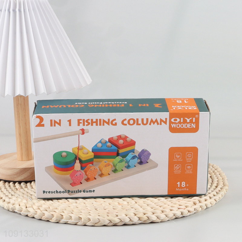 Hot Selling 2-In-1 Wooden Sorting and Stacking Toy Fishing Toy for Kids