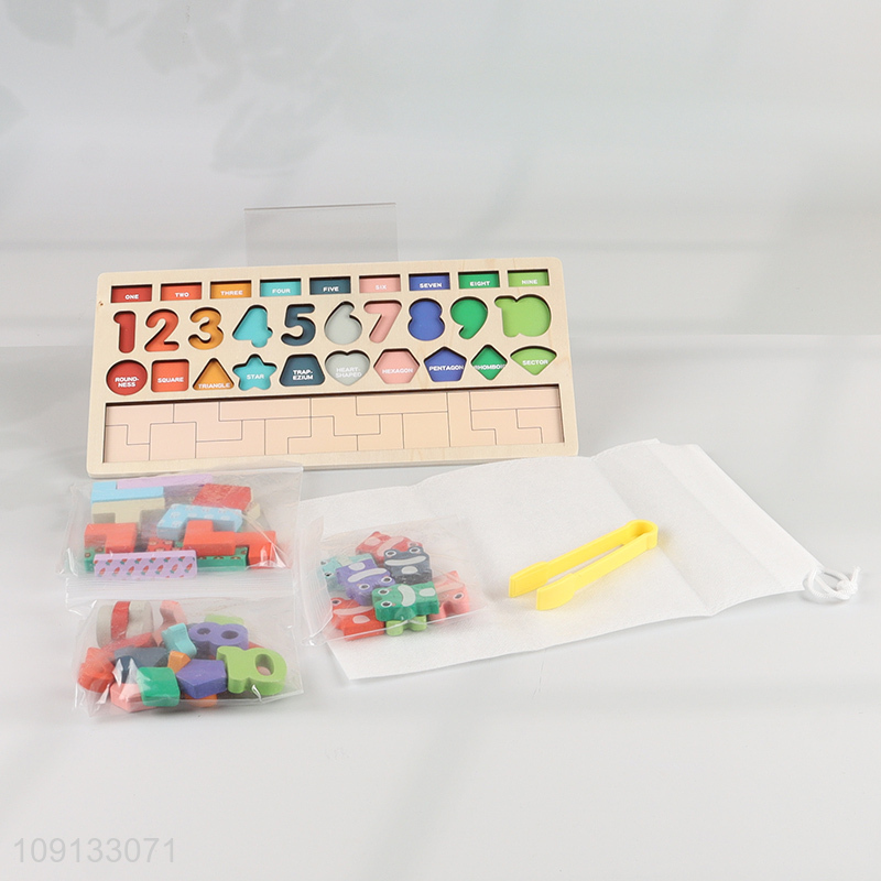 Wholesale 4-In-1 Wooden Toys Wooden Number Shape Puzzle Sorter Counting Game