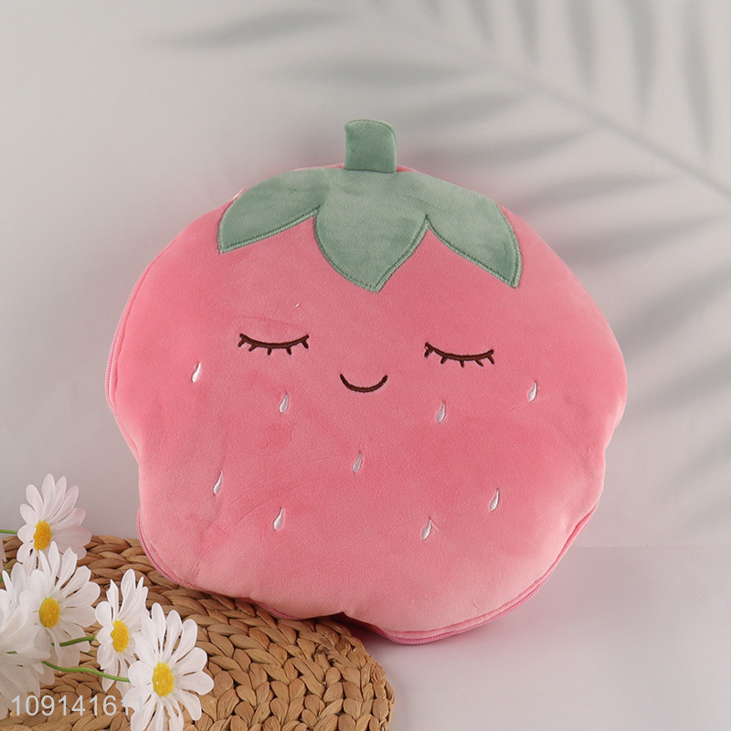Hot Selling 2 In 1 Strawberry Design Coral Fleece Pillow Blanket for Bedroom