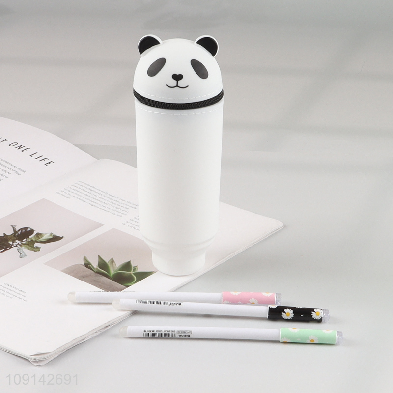 China factory cartoon panda shape silicone students pencil bag