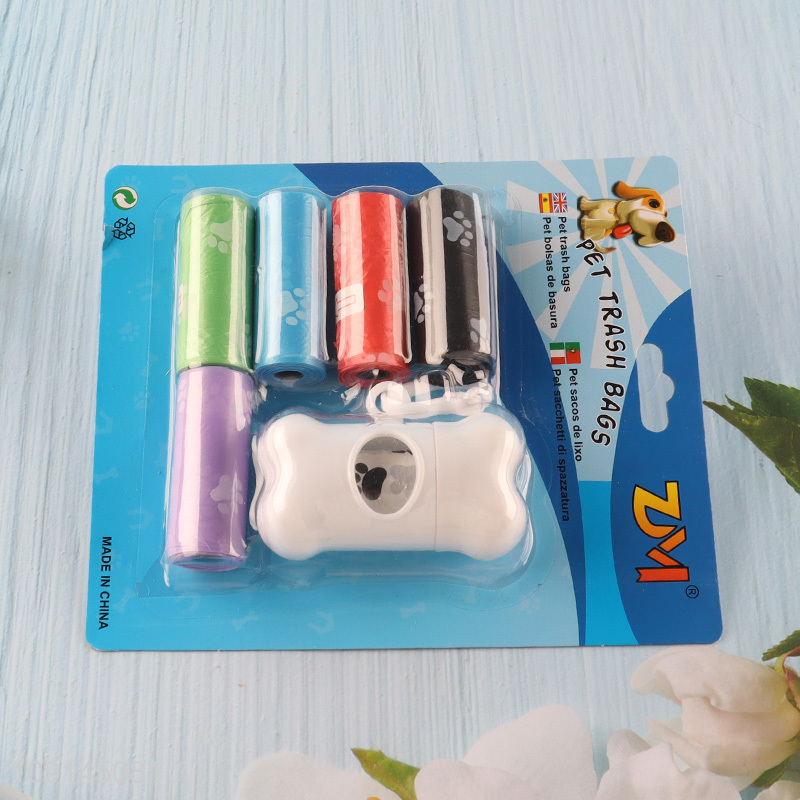 Good Quality 6 Rolls Disposable Dog Poop Bags with Bone Shaped Dispenser