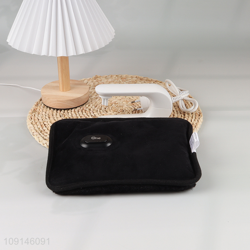 Good selling black winter plush rechargable electric hot water bag with VDE europe plug