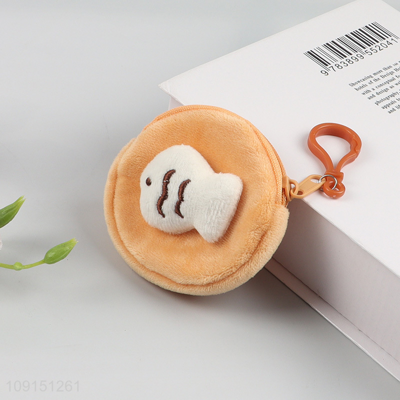 Low price round plush mini portable children coin purse key bag