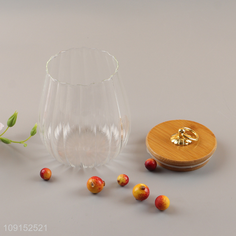 Top selling clear glass sealed storage jar with bamboo lid