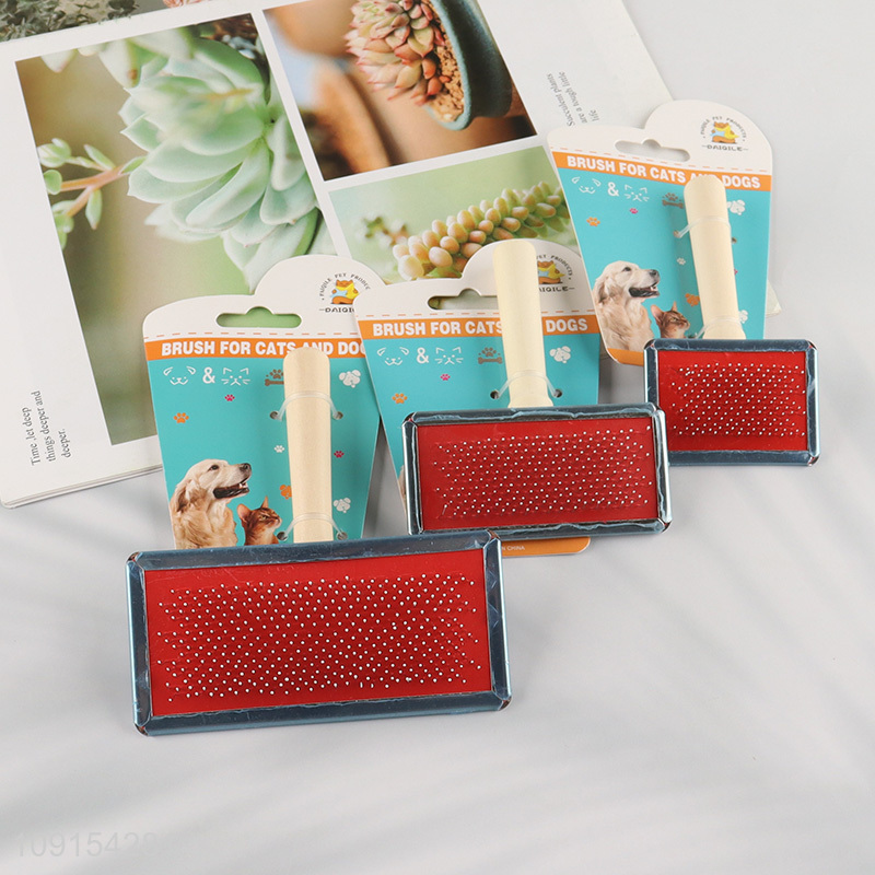 Wholesale Dog Slicker Brush Pet Grooming Brush with Wooden Handle