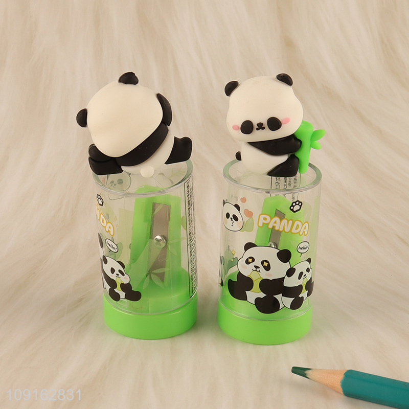 Factory price cartoon panda trash can pencil sharpener for sale