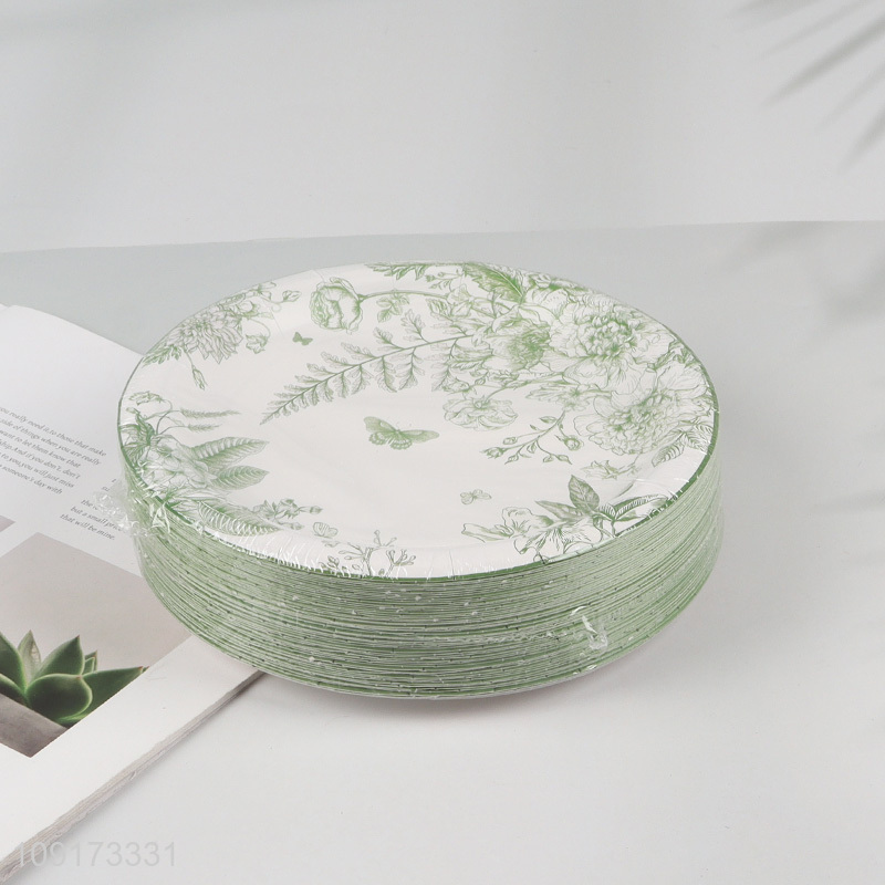 Factory Price 50 Pieces Disposable Greenery Paper Plates Paper Party Plates