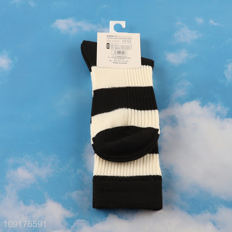 Top selling women crew socks cotton socks striped socks wholesale