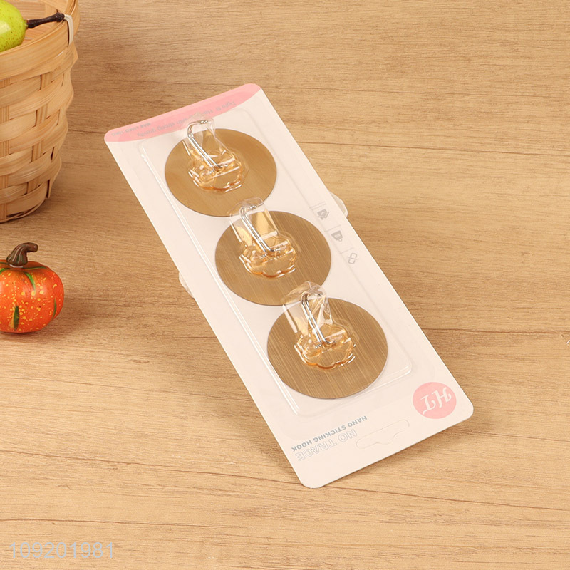 New product 3pcs round golden sticky hook adhesive hook set for sale