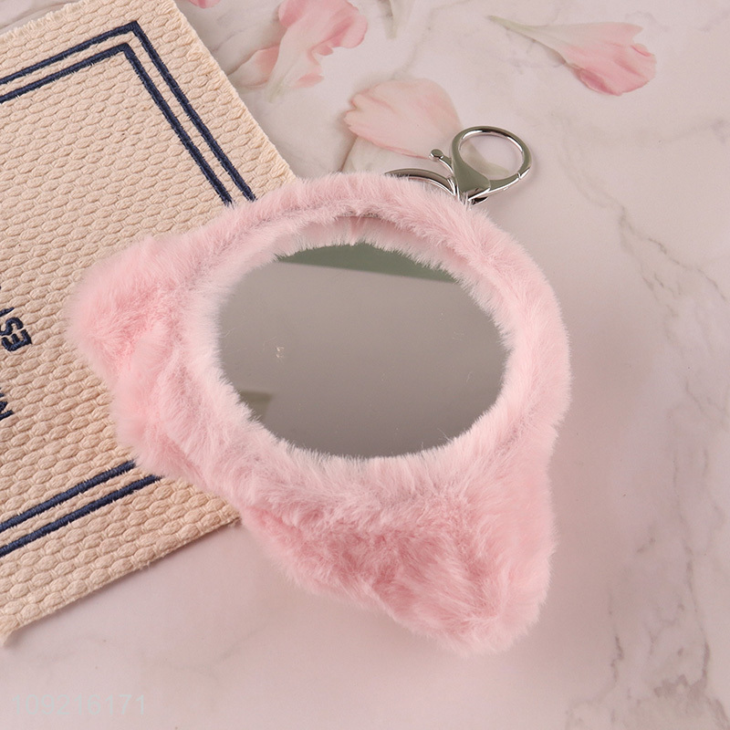 Yiwu market cartoon plush makeup mirror cosmetic mirror keychain