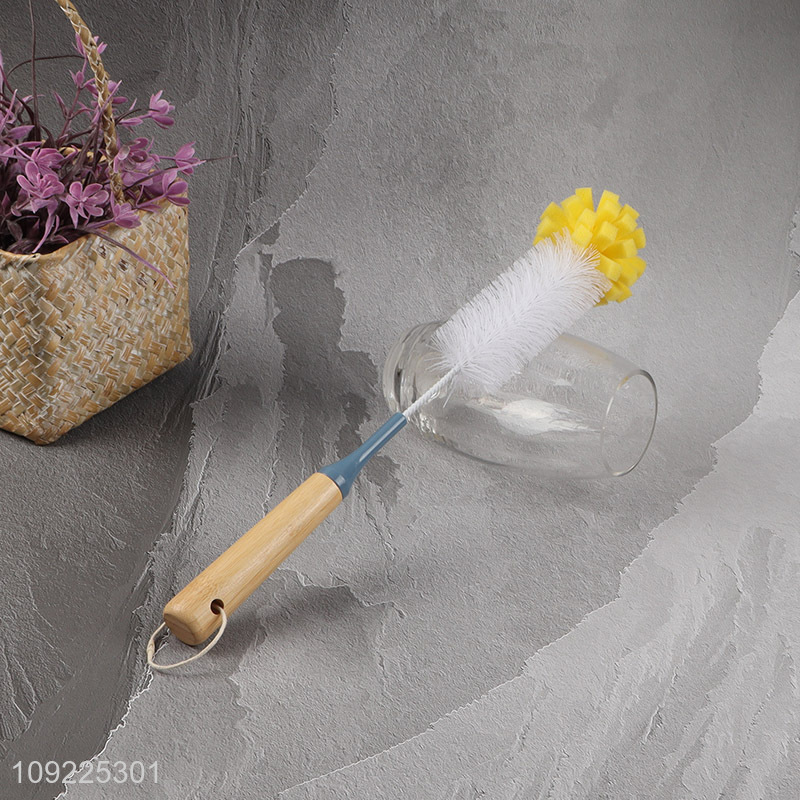 Factory Supply Wooden Handle Sponge Bottle Brush for Cleaning Beer Wine