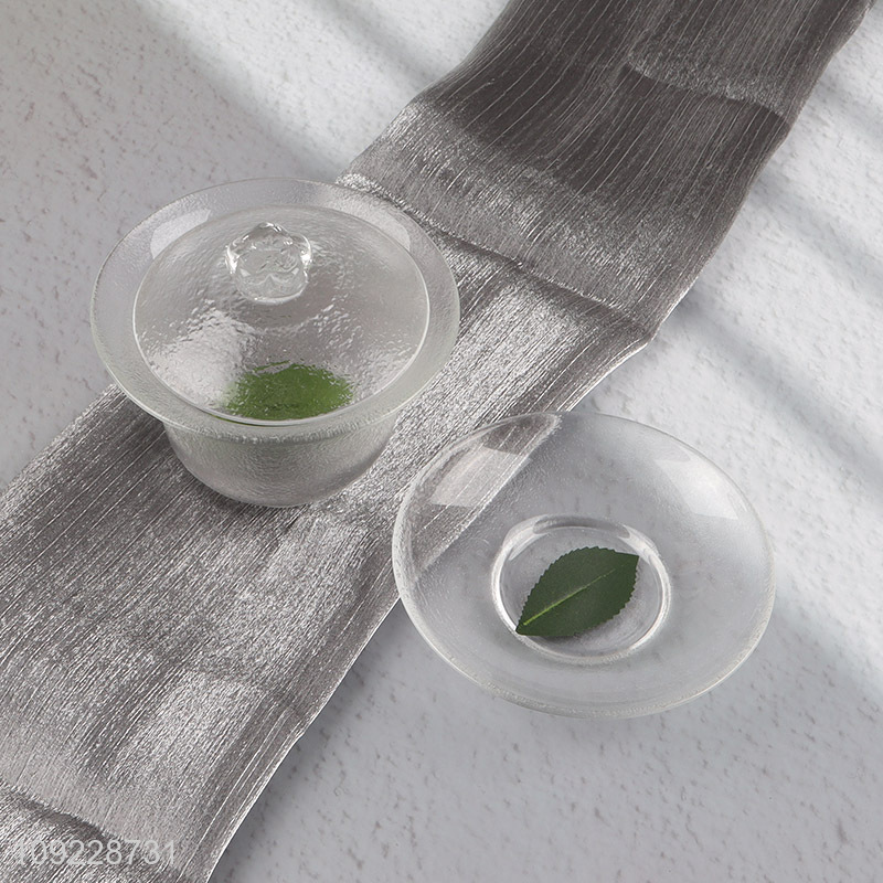 Good Quality Transparent Glass Tea Cup Set with Lid and Saucer