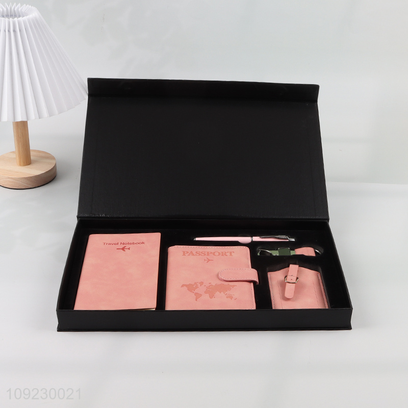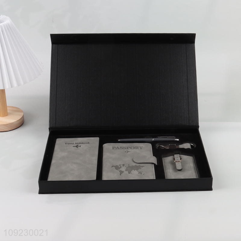Wholesale 5PCS Gift Set with Travel Notebook, Passport Holder, Luggage Tag, Pen and Keychain