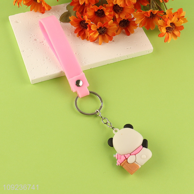 Good quality cartoon panda pendant silicone keychain key rings for gifts