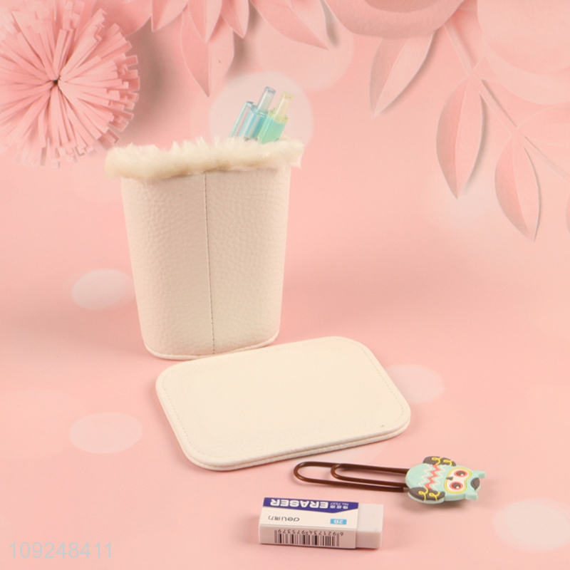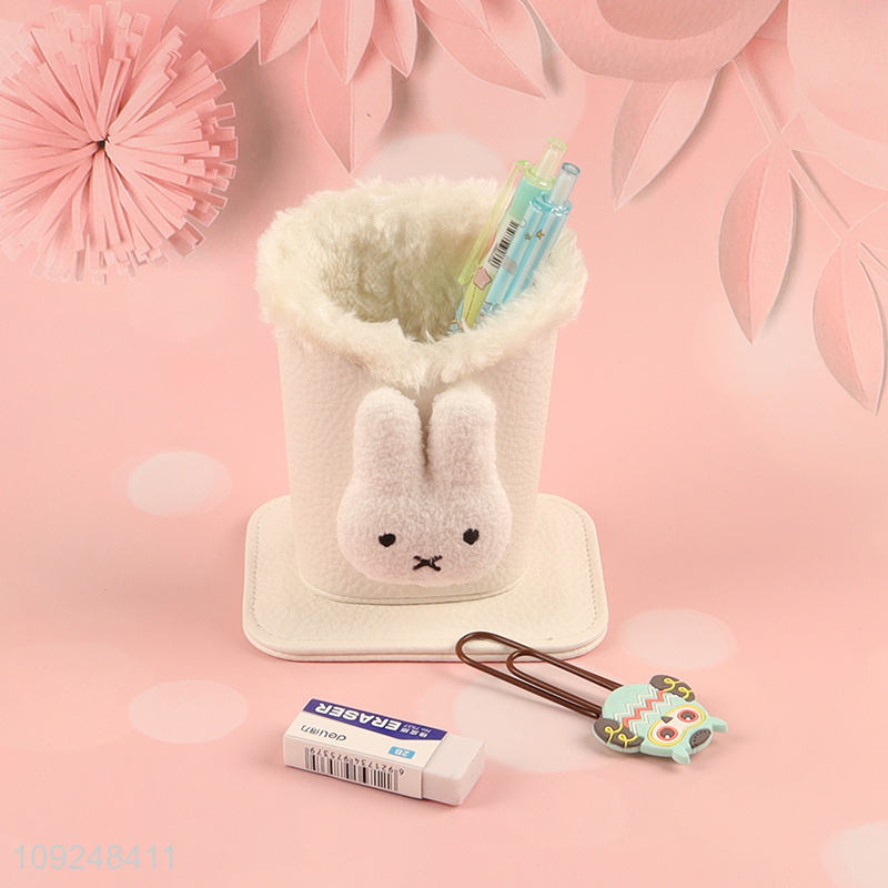 Yiwu market cartoon plush rabbit stationery storage pen holder for desktop
