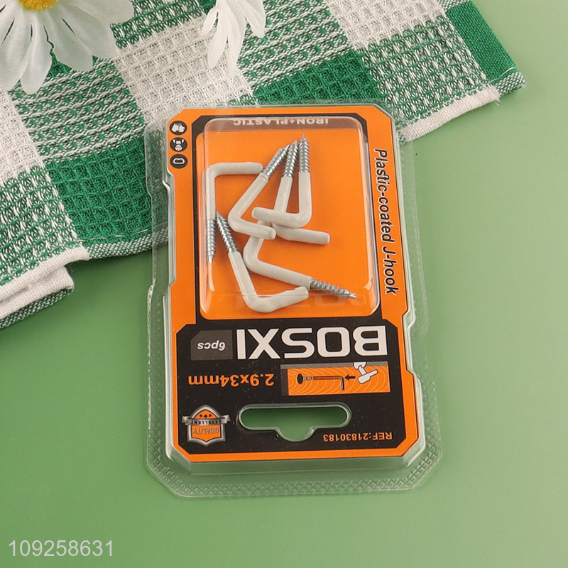 Hot Selling 6 Pieces Screw-in Hooks Plastic Coated Right Angle Metal Hooks