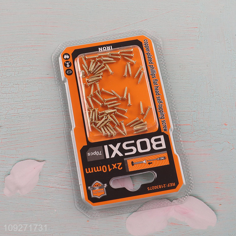 Yiwu market 70pcs 2*10mm copper-plated phillips flat head self-tapping screws