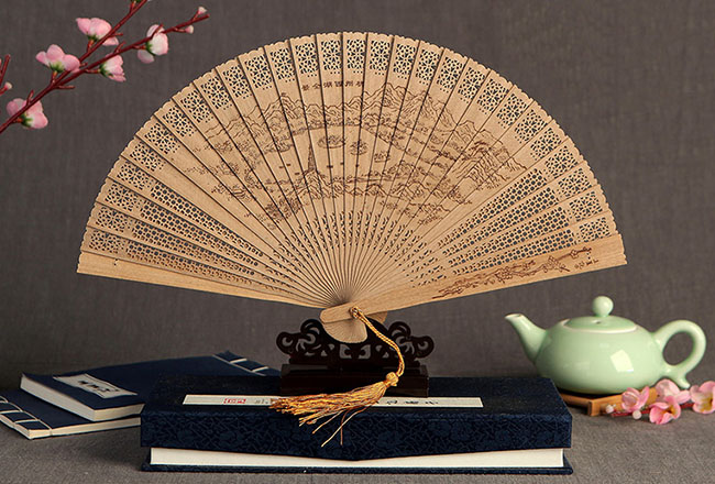 The most interesting of a folding fan is usually made of xuan paper or silk and beautifully painted. Today, there are over 500 kinds of fans in China, of which the sandalwood fan from Suzhou, Jiangsu Province, the damask silk fan from Hangzhou, Zhejiang Province, the fire-painting fan from Guangdong Province and the bamboo thread fan are known as the four most famous fans of China.